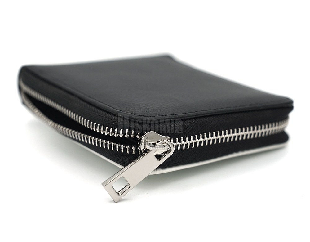 Компактный, удобный кошелёк на молнии, который отлично умещается в кармане. Внутри одно отделение для купюр, один карман для мелочи с клапаном на кнопке и три кармана для пластиковых карт.