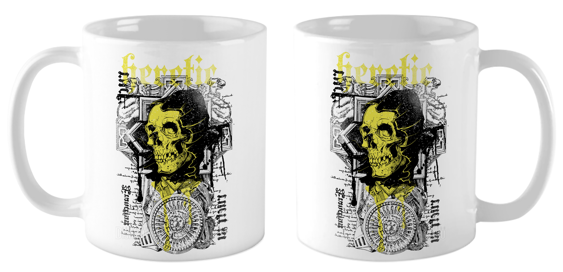 Керамическая кружка Herefir — стильный аксессуар для вашей кухни. Она выполнена в белом цвете и украшена изображением черепа в чёрно-жёлтых тонах. Объём кружки составляет 330 мл, она отлично подойдёт для горячих и холодных напитков.