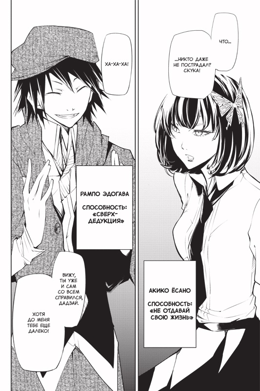 В пятом томе манги "Проза бродячих псов" (Bungo Stray Dogs) продолжаются захватывающие приключения агентства по борьбе с преступностью, состоящего из обладателей сверхъестественных способностей и вдохновленного знаменитыми писателями.
