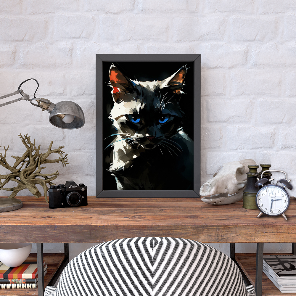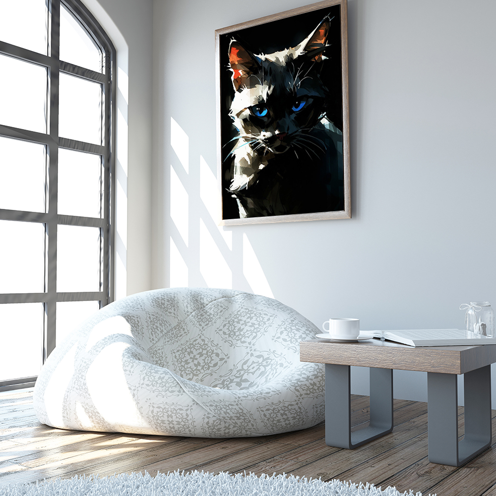Погрузитесь в мир загадочной кошки с голубыми глазами с помощью интерьерного постера NeuroArt. Яркие краски и детали создают удивительную атмосферу загадки и таинственности. Подарите своему интерьеру неповторимый шарм с этим стильным постером.