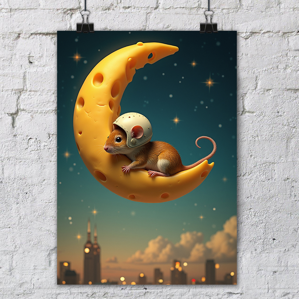 Плакат бумажный NeuroArt Сырная луна и мышь постер интерьерный No.027